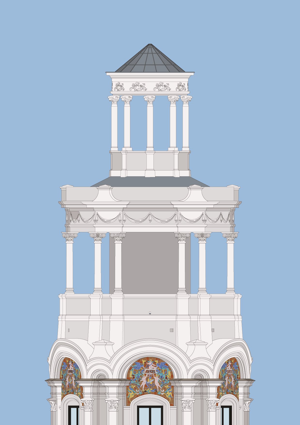 Ilustración arquitectónica del Torreón del Edificio Grassy