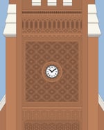 Durante décadas, fue la construcción más alta de Madrid: los 60 metros de altura de su imponente torre tan sólo fueron superados en 1926 por el Edificio Telefónica en la Gran Vía. Se alza como un recuerdo de sus desafortunadas predecesoras, en especial la famosa “Atalaya de la Corte”, como se conocía popularmente a su torre anterior por su altura. Vestida en ladrillo visto y sillería de piedra blanca de Colmenar, su diseño mezcla rasgos neomudéjares y neogóticos, con matacanes defensivos que le confieren un aire casi fortificado.