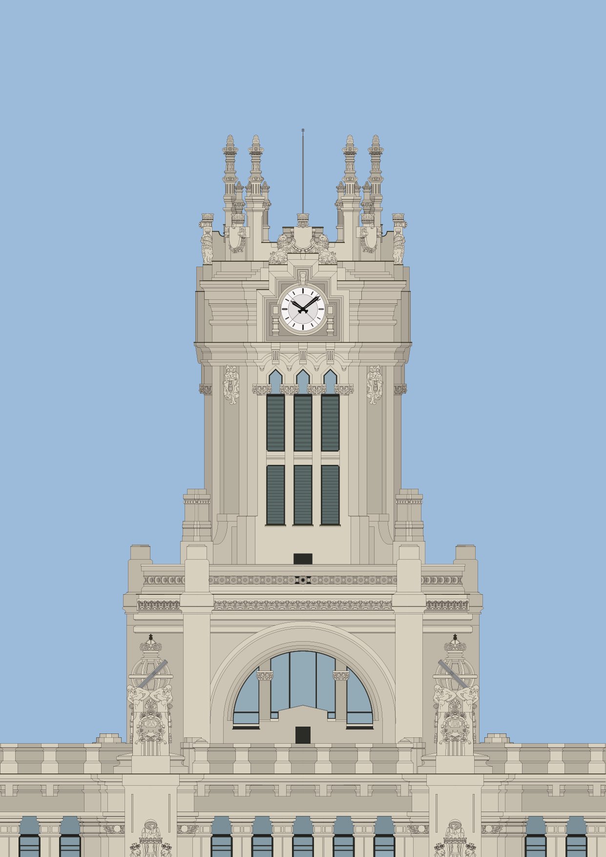 Ilustración arquitectónica del Torreón del Palacio de Comunicaciones
